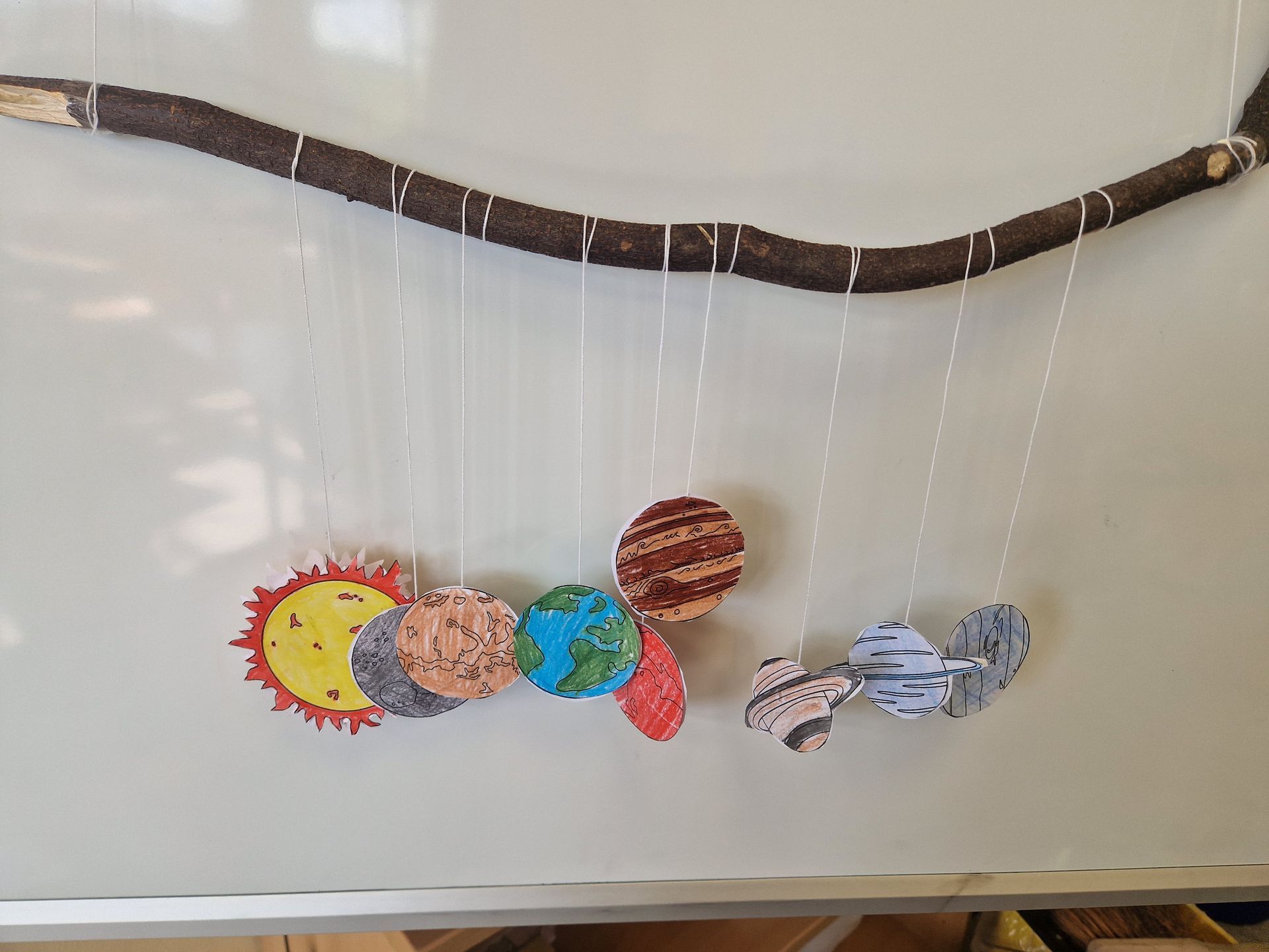 Außerdem lernten wir unser Sonnensystem kennen und bastelten einen Planetenfächer und ein eigenes Sonnensystem für Zuhause.